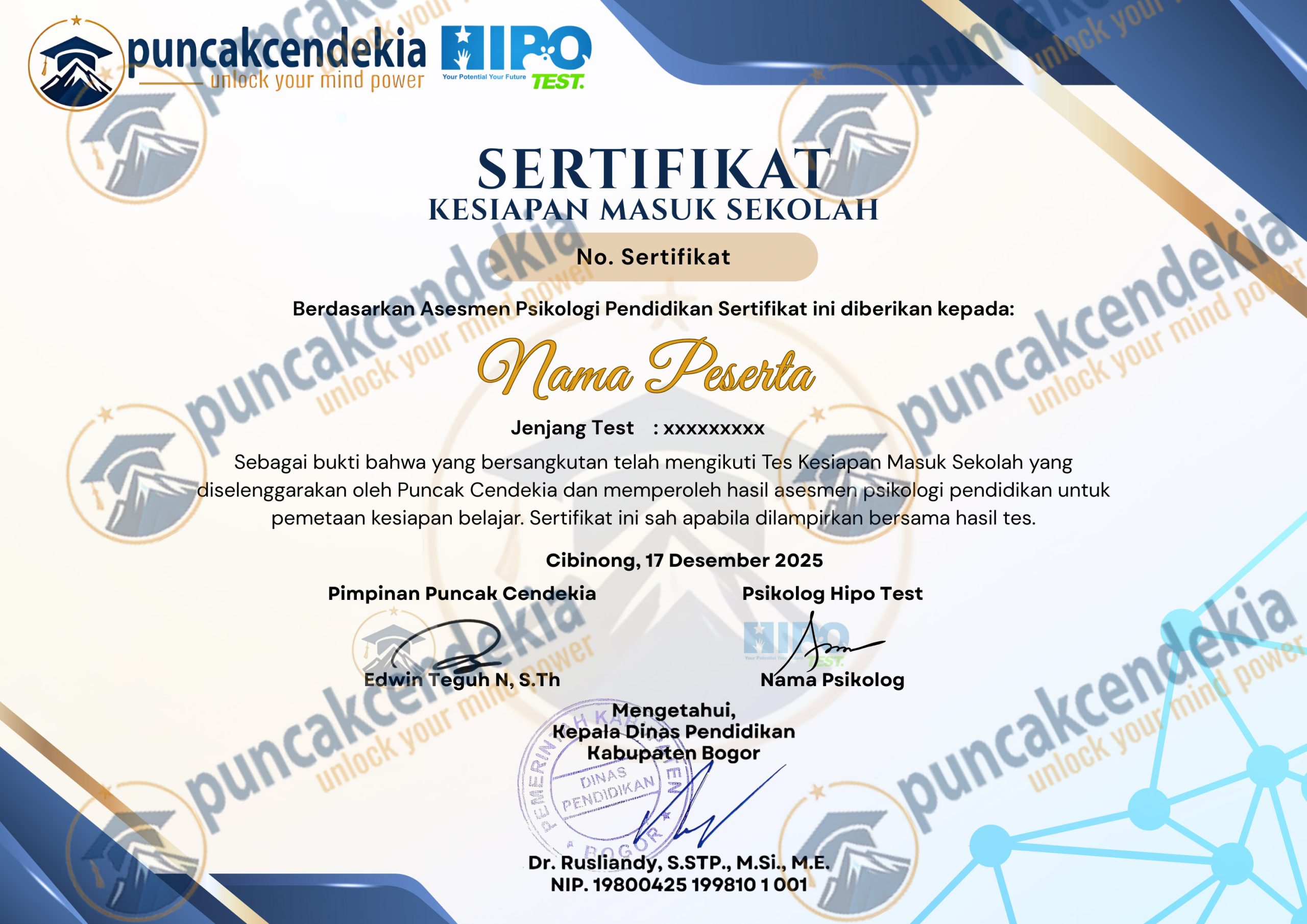 Tes Kesiapan Masuk Sekolah Bersama Puncak Cendekia